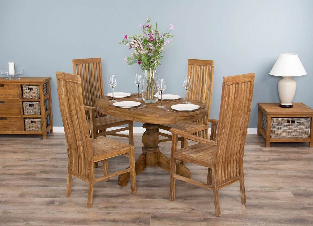 Reclaimed Teak Dining Table 1m Circular And 4 High Backed Teak Dining Chairs Sustainable Furniture